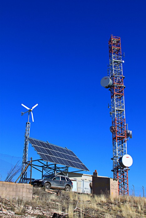 Currently 6 KWp of photovoltaic energy and an Enair 70 at 48V, are responsible for offering more than 50 kwh / day on average which this station, located in an area with a large solar and wind resource, demands. This installation is completely monitored in all its parameters, able to take complete control of each one of its elements, thanks to the development from the SAITIM group.