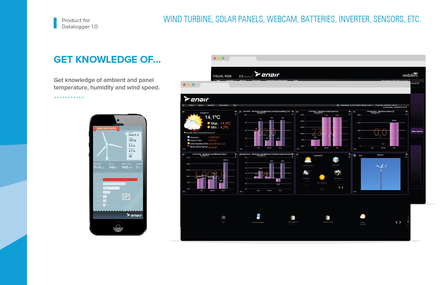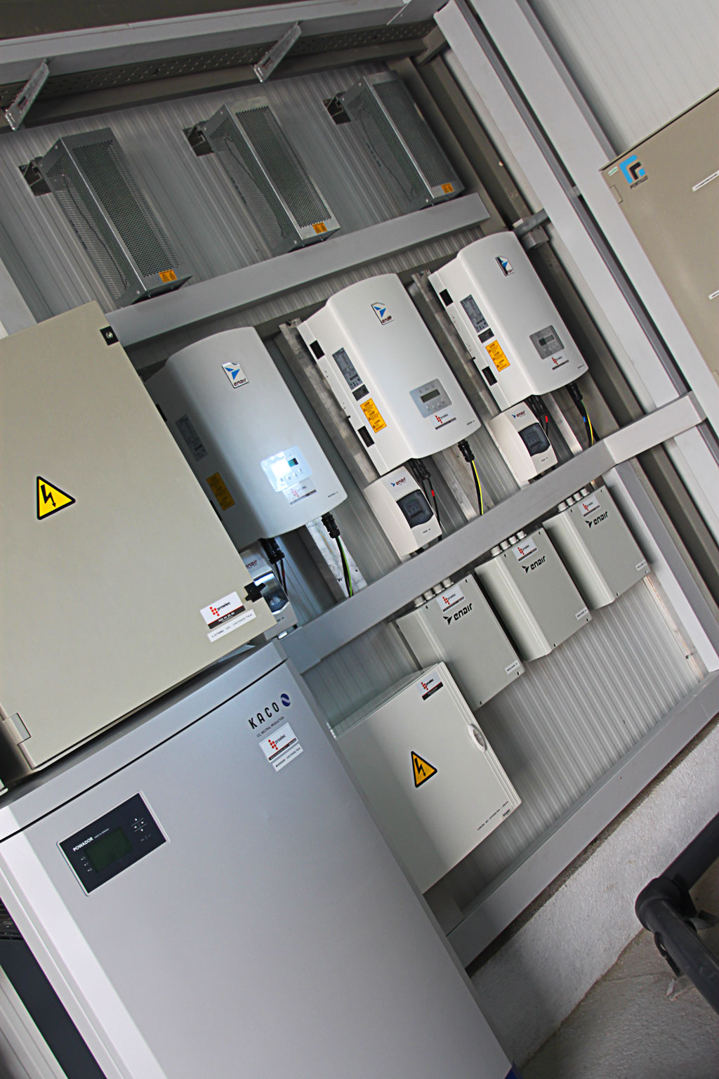 Furthermore, the installation has an customised monitoring system so that both solar and mini-wind turbine production are visible and managed by a specific software which allows one to visualise at a glance the solar and wind production even in mobile terminals.