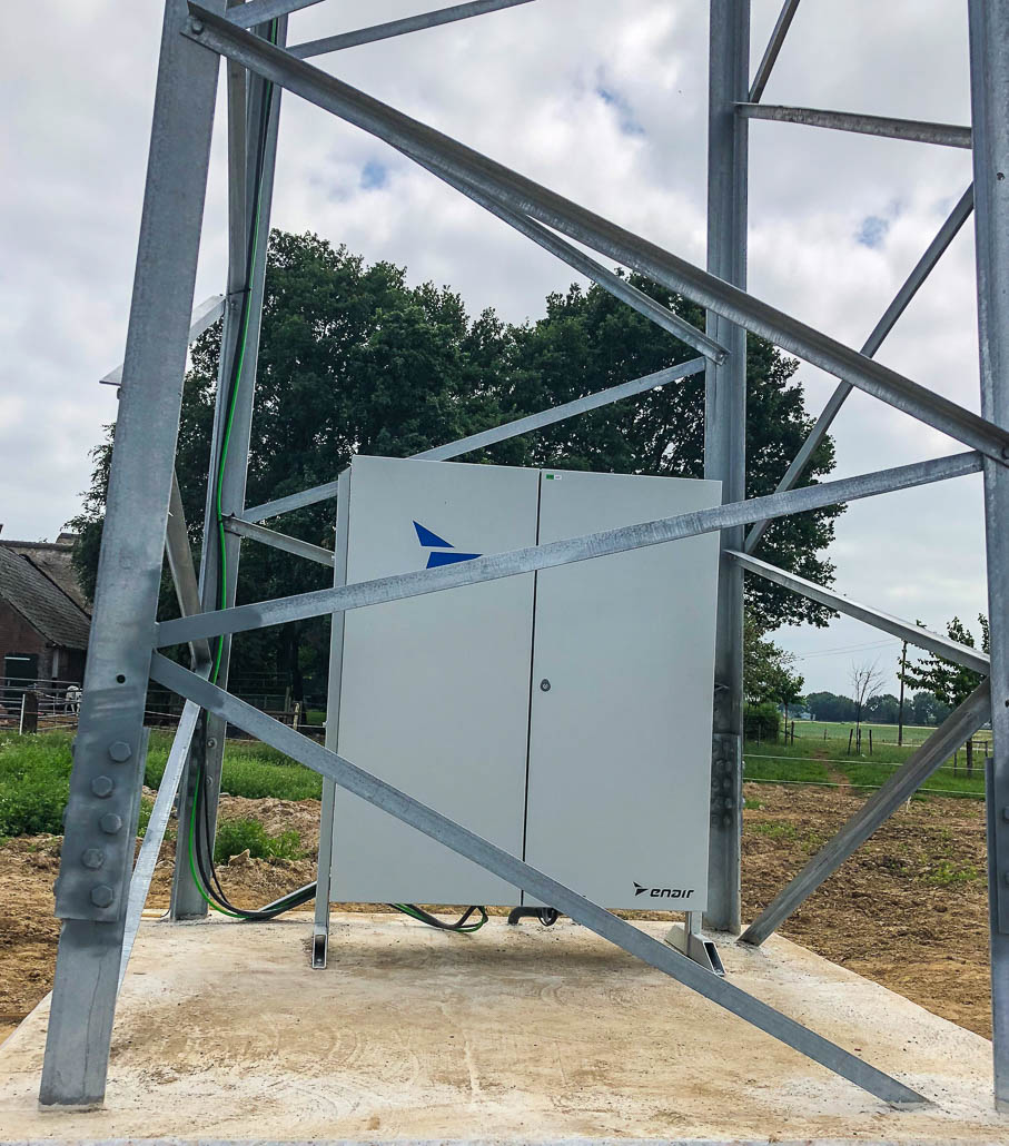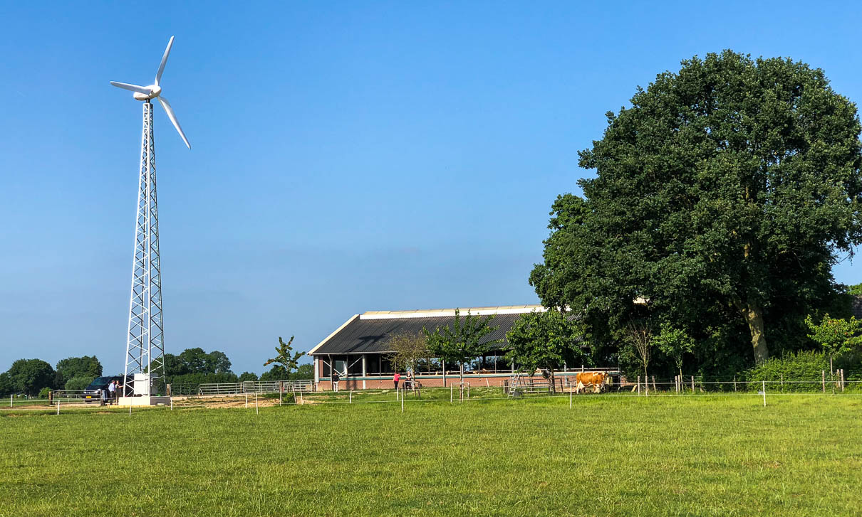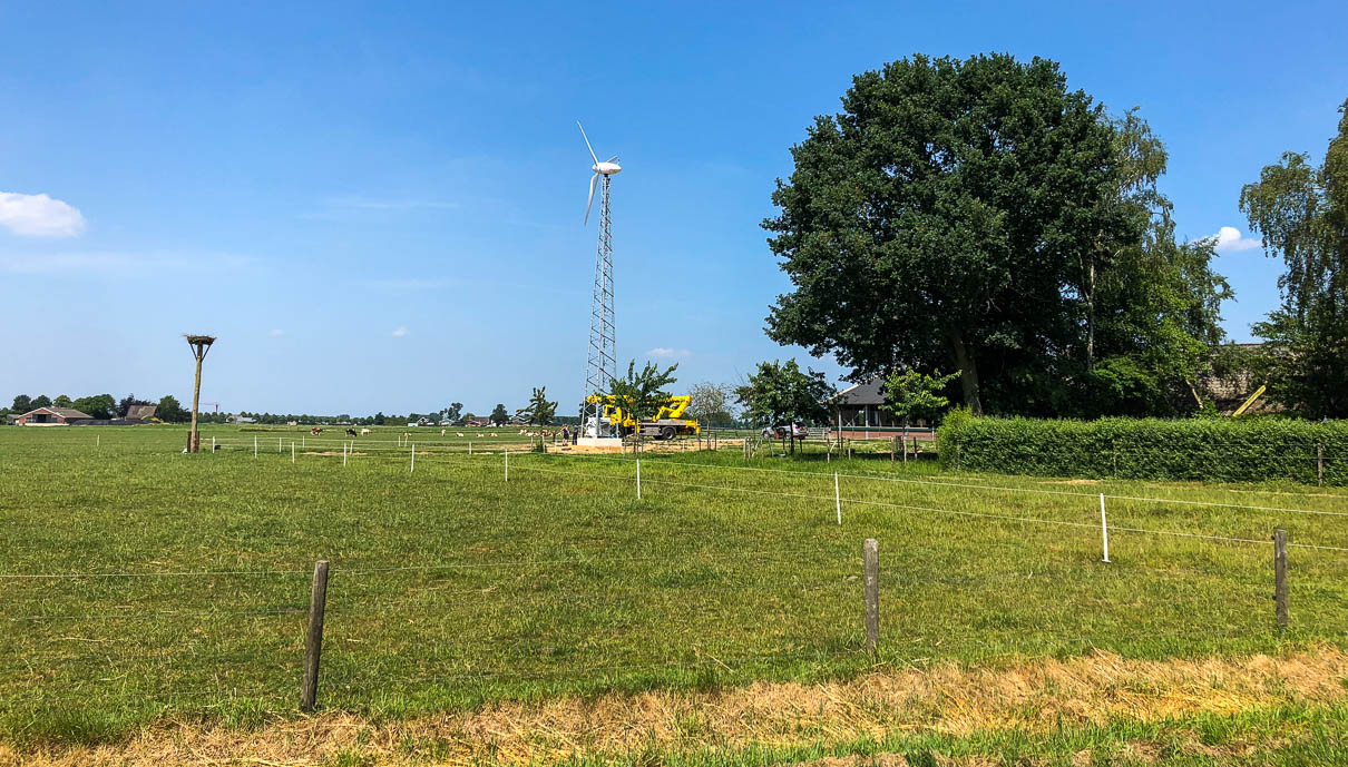 The installation is made up of the E200 wind turbine and a 24m tower located on a level ground in an open field with minimal obstacles.